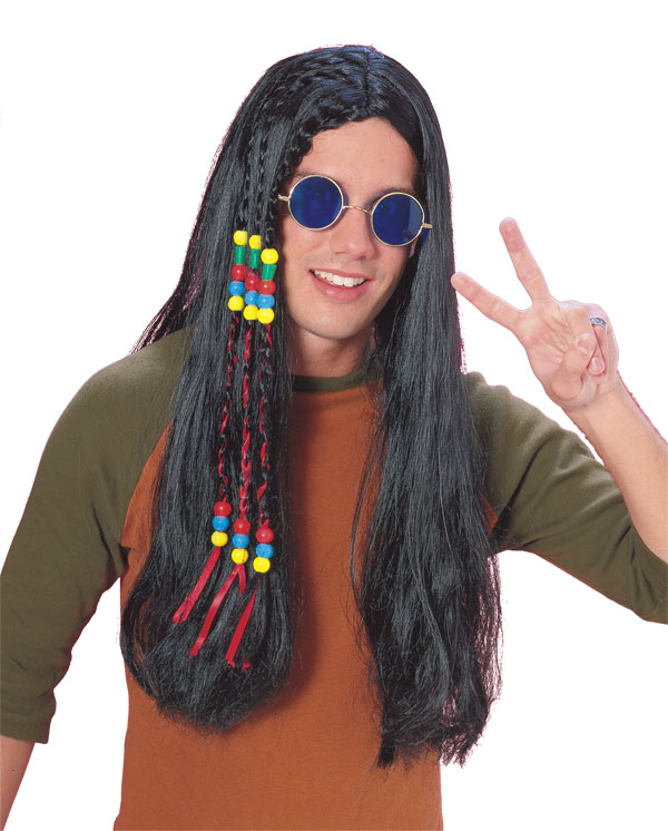 Feel the love with this wonderful Black Hippy Wig. These Hippy wigs are High quality with braids, ribbons and beads. These Long Hippie wigs are perfect for both men and women, and can be combined with a beard for the men to complete the look. Why not add a wig cap to secure your Wig in place and hide away any of your own hair. These 60s wigs or 70s wigs are great for Hippie costumes or Indian Costumes. Also available in blonde.