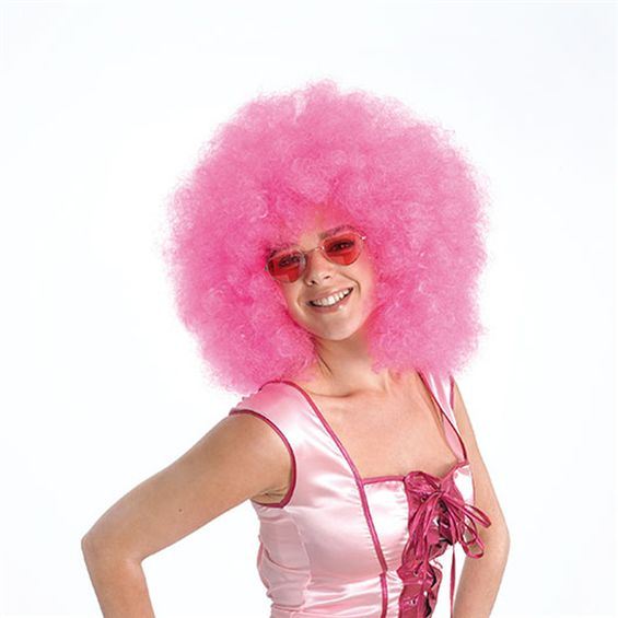 This Pink afro wig is great as a clown wig, retro wig or candy floss wig!