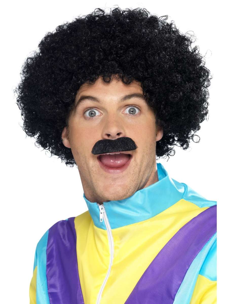 This Scouser Kit, includes black curly wig & tash. Don’t forget to add this kit with our 80s shell suit costume to really complete your 80’s look.
