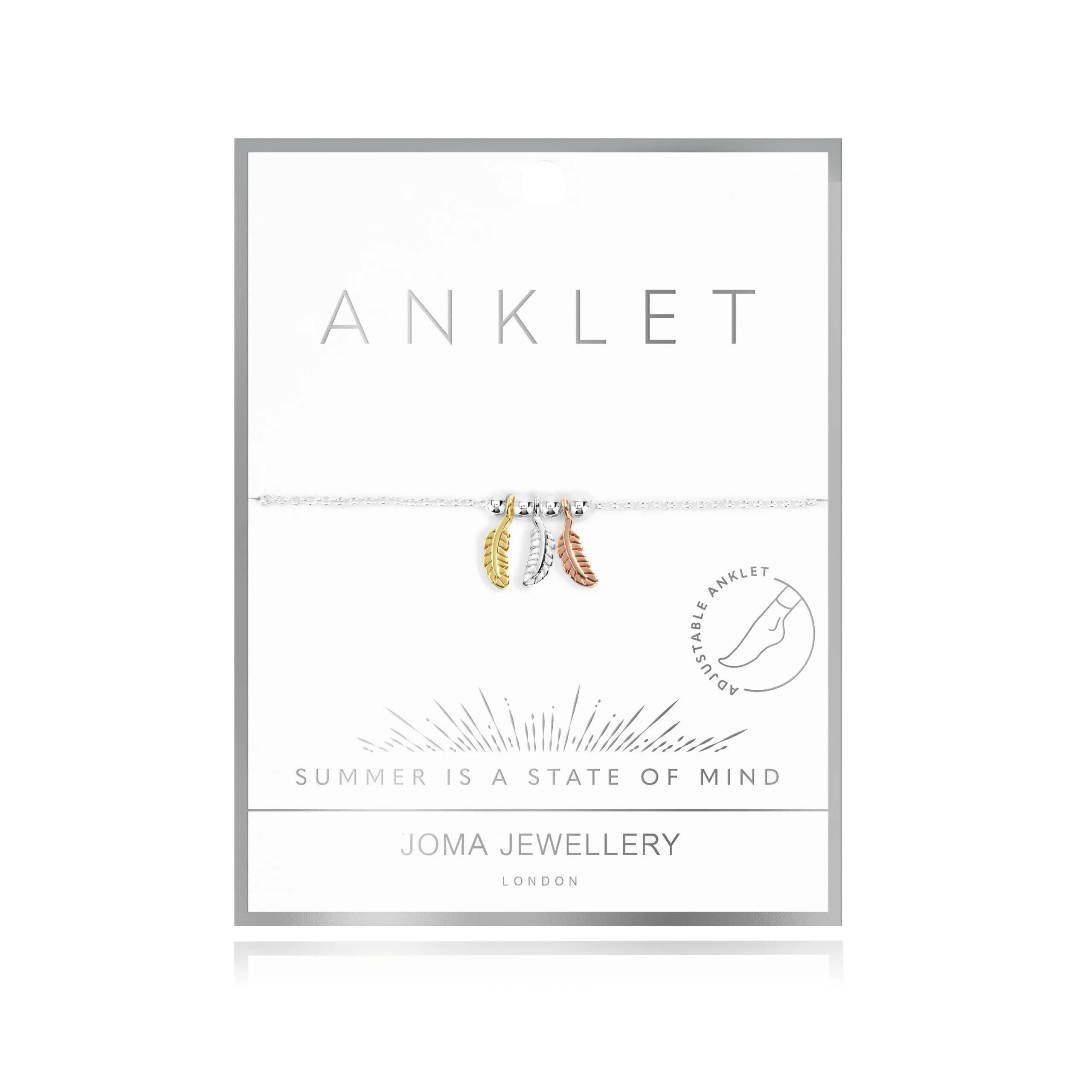 This adjustable Three Tone Feathers Anklet is crafted from different coloured metals, decorated with smooth charms that shine in the sunlight. Suitable for any occasion.